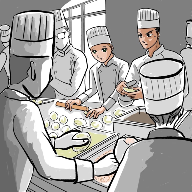 江川も生地をなるべく同じ長さに伸ばした。途中毎回どっちの生地が次どこに編み込まれるのか分からなくなるが、なんとかどうにか成形を終えた。各自四個ずつ成形して皆見比べに来た。