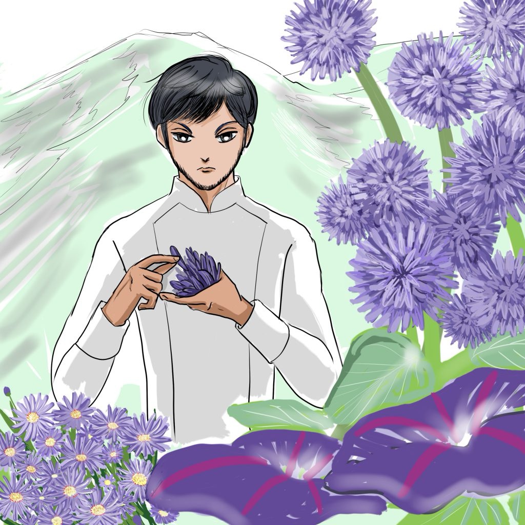 その後上品な夕顔や、ヒゴシオンなどの紫色の高山植物を次々に作っていった。