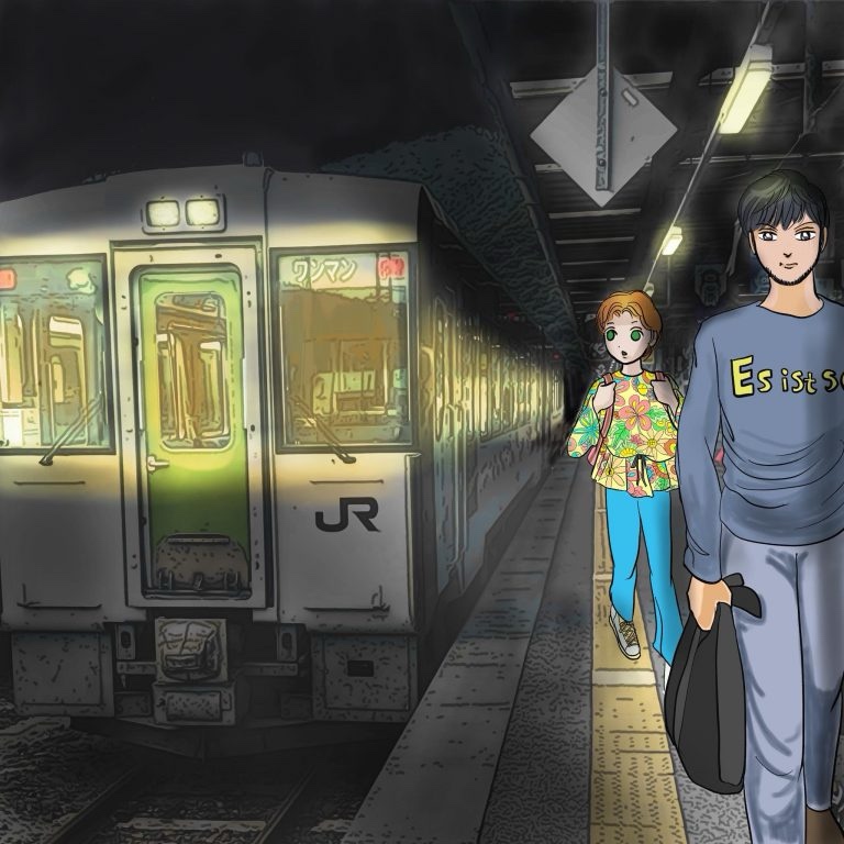 その時電車が駅に着いた。