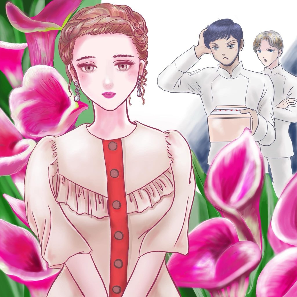 「私たちは鴨似田フードって言う会社の中途採用で入ったばかりの社員です。私は歩田、こちらは兵山と申します」とショートヘアーの方の男が話しだした。「3日前、会社が仕切っているレセプションパーティーがありまして、材料を料理教室で作って私達が会場に運ぶ予定だったんです。それでこっちのイケメンがパンを配達に来た時に奥さんが一目惚れしまして、、次の日はもうパーティーが終わってんのにまたパンを頼んだらその日はものすごい大男が来て、次の日にもう一度頼んでこのイケメンが来たら連れてくる様に言われてたんです」