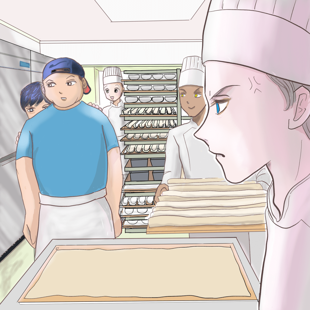 目を三角にしながら分割した生地の乗ったバットを持ってきた江川を見て親方が心配した。