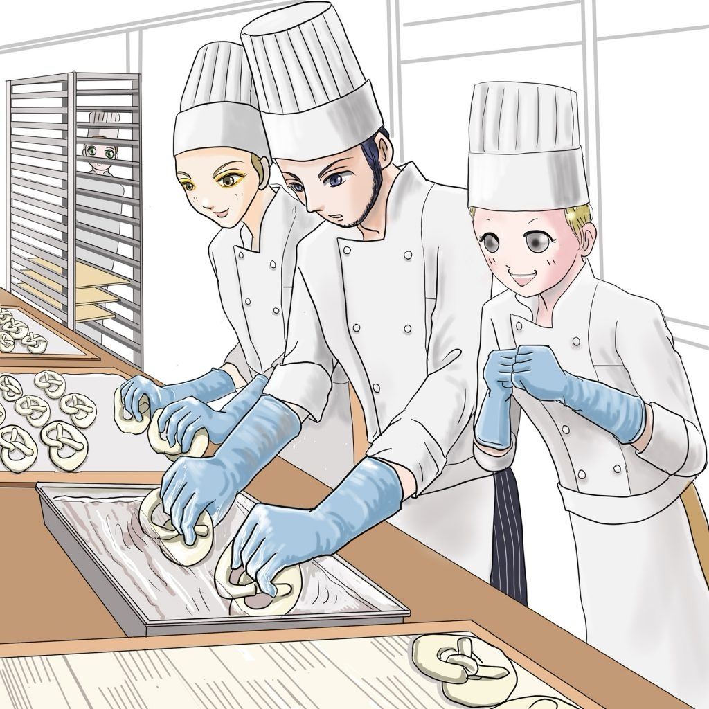 パンロンドかベッカライホルツの職人しか知らないので、誰かと思っていたら「あっ!塚田さん、三田さん、辻さん」以前(イーグルフェザーと言うお話で)鷲羽とヘルプに行ったベークウェルと言うパン屋で知り合った職人達が入って来たので江川は大喜びだった。