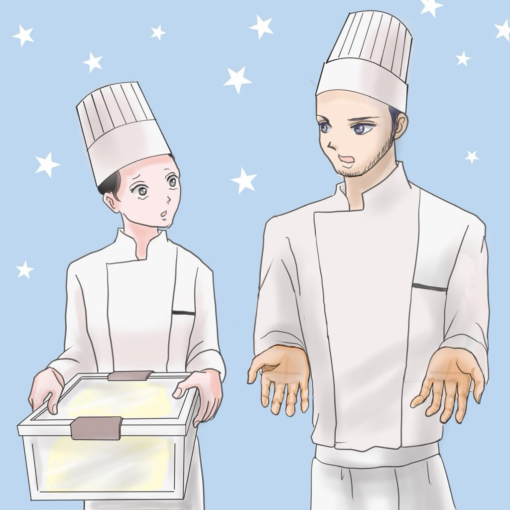 販売員の安芸川が店から「修造シェフ」と緊張した面持ちで内線をかけて来た。
