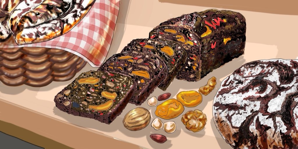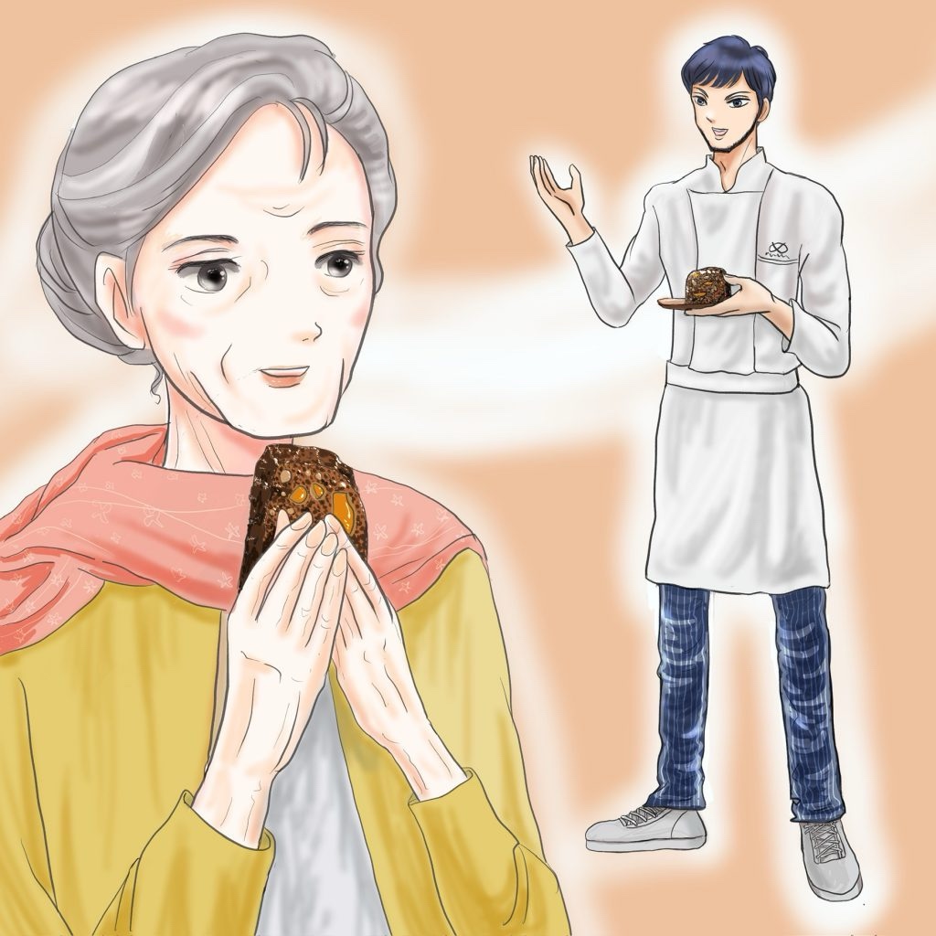 「あまり馴染みがないかもしれませんが、ライ麦パンは低GI食品と呼ばれていて血糖値の上昇が起こりにくい。ミネラルや食物繊維も含まれていて、ドライフルーツはマグネシウムやカリウムなどのミネラルを多く含んでいます、そしてナッツもミネラル、食物繊維、不飽和脂肪酸が含まれている。これを食べたから健康になれるとは言いませんが、お腹が空いたらこれを食べるのは良いことかもしれません」修造は普段無口だがパンの説明になると饒舌になる。