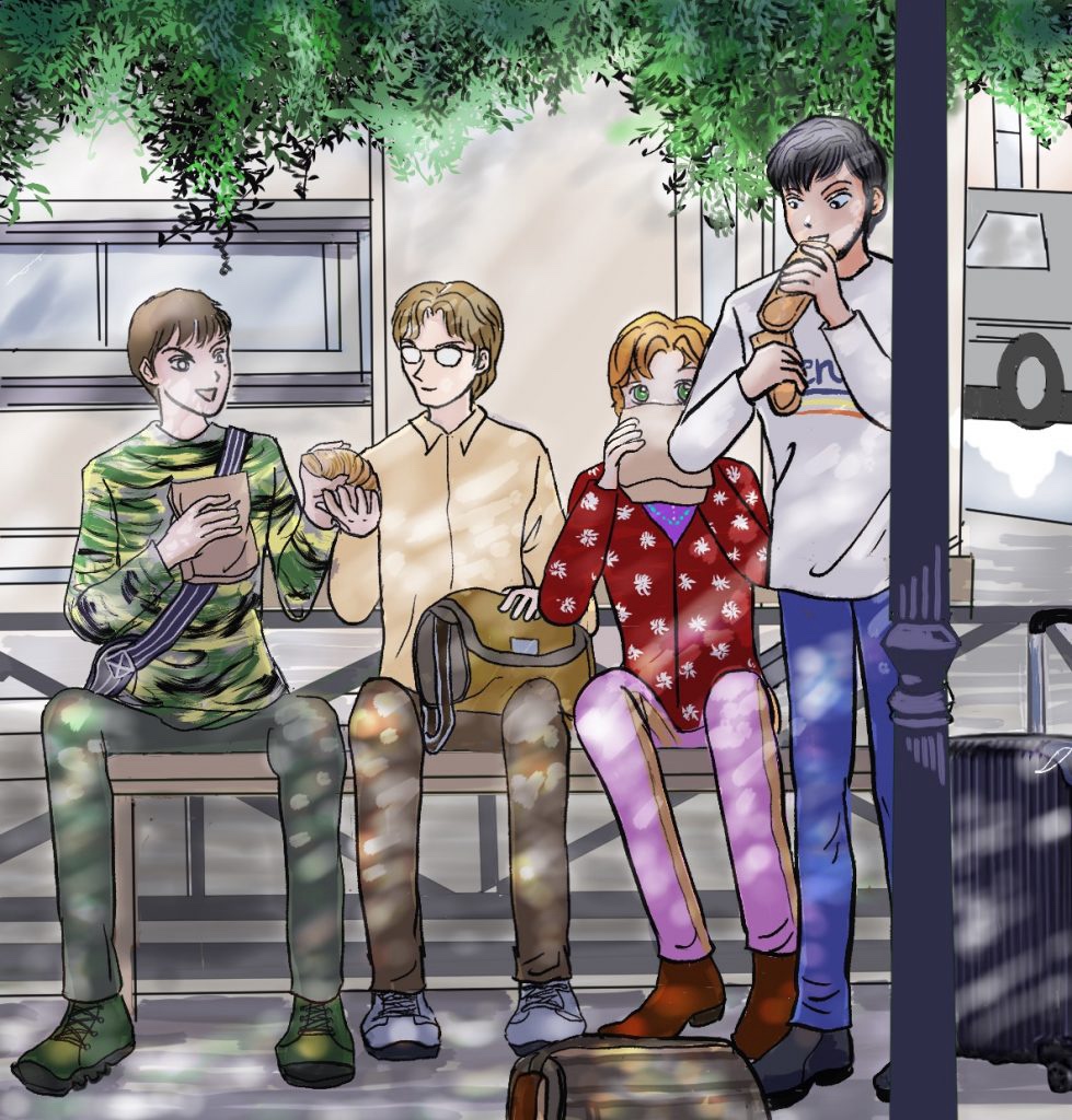 明日はモンサンミッシェルに行くのだが詳しい行き方を園部に聞いた。が、園部は「うーん」と言って考えている。鷲羽がその場で色々調べて教えたので山々コンビは本当にびっくりした。