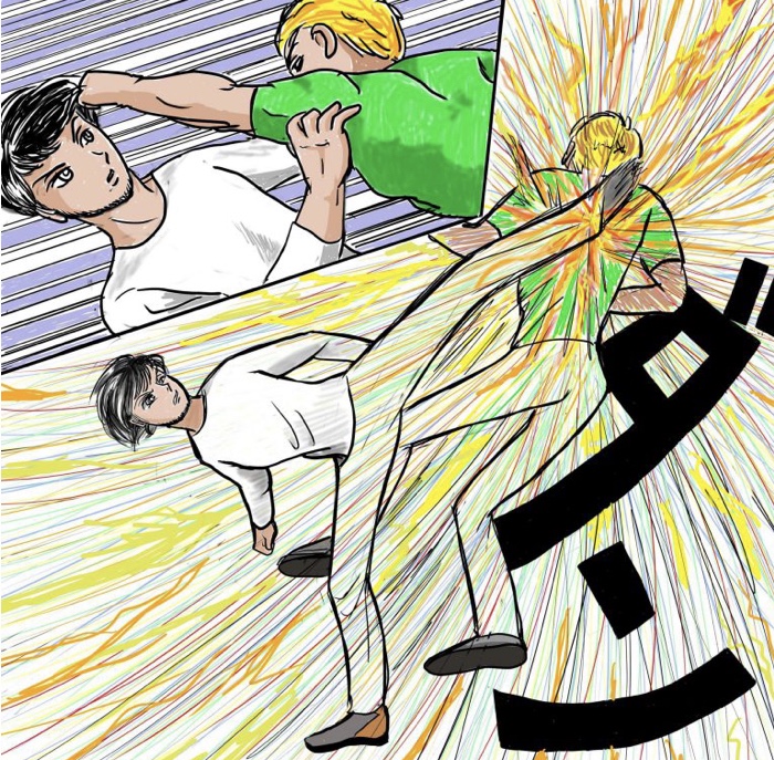 「あぶねえ!」避けた杉本に返す刀でもう一度切りつけた時、修造が男の足を右足で払った。本来なら足払いの後胸に一発正拳突きをお見舞いする所だがよく見るととても細くか弱い感じで、あばらを折ってはいけないのでやめた。