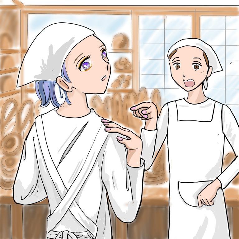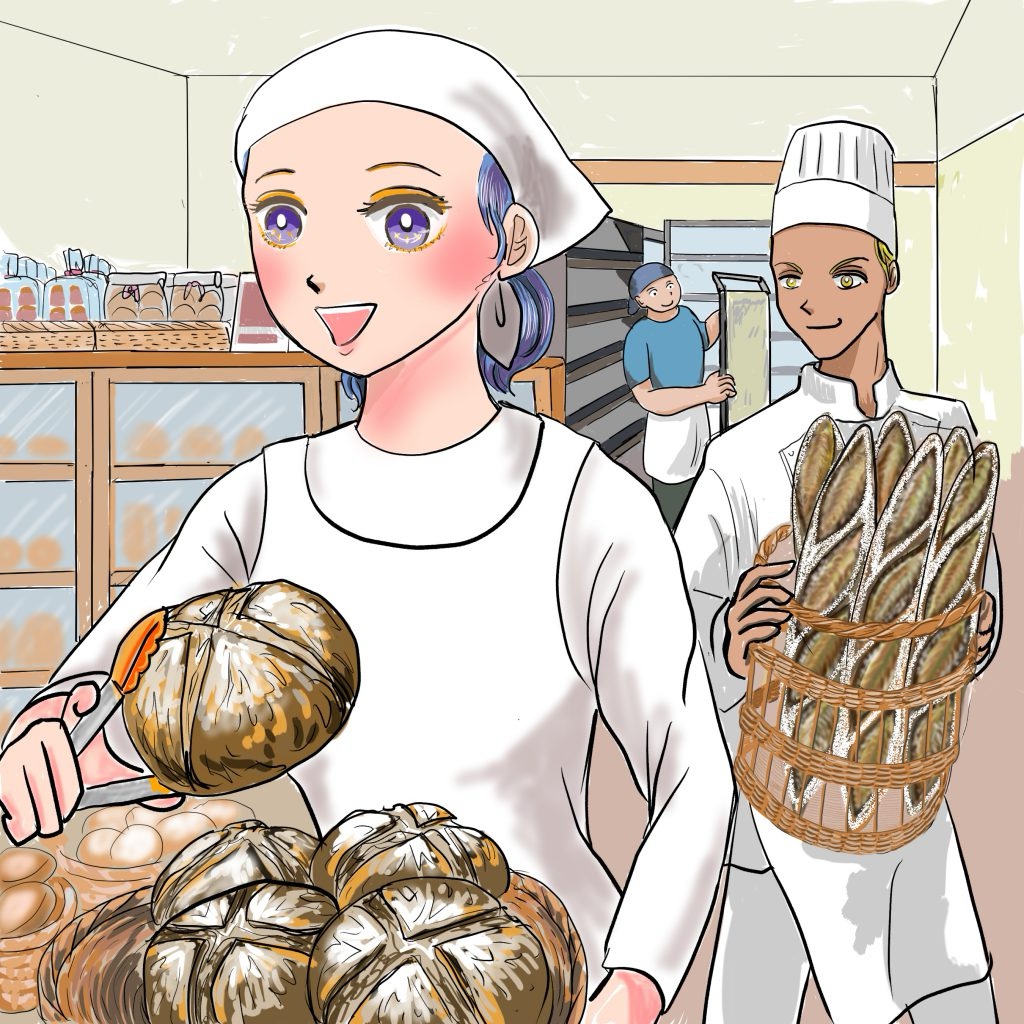 「早く焼けたパンをトレーに入れて出してよね。何回言われたらわかるのよ」拒絶された上に厳しく言われて杉本は苦笑いして「はーい」と言われた通りに急いで品出しした。