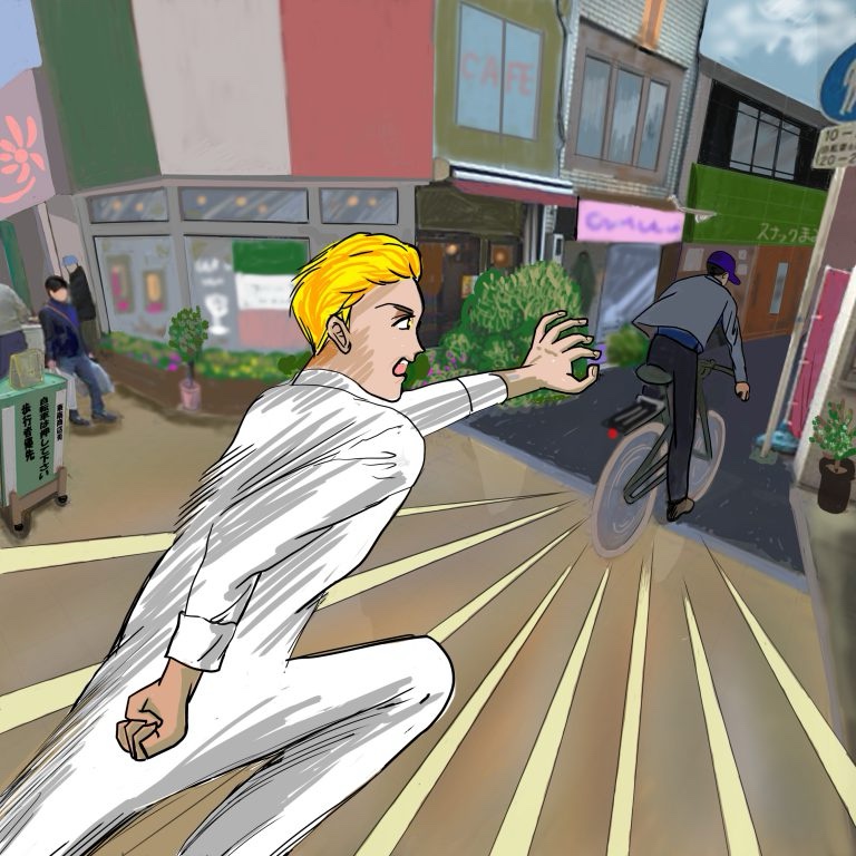 と打って杉本は店から飛び出した。男は杉本を見て素早く自転車に飛び乗りこぎだした。