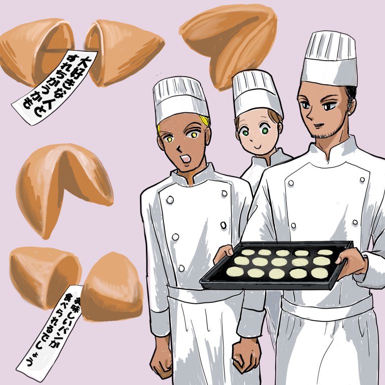 フォーチュンクッキーを選んで受け取ったお客さん達は皆中を開けて「あ!夜道に注意だって!」とか「こっちは片想いが実るだって!」などおみくじクッキーの様々な文言を楽しんでいた。