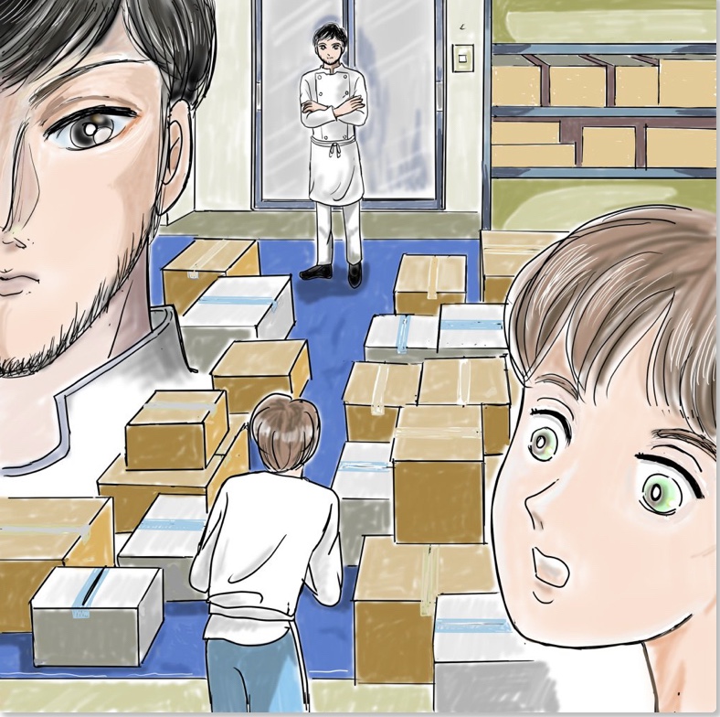 佐久間シェフはアイスクリーマーを覗いてみるとまだ液体のままグルグル回っている、上手く温度が下がってない様だ。「どうしましょう?次もうデザートを出さないといけないのに」ちょっとだけ固まりかけたアイスをみてうろたえた。「もう少し待ってみよう」