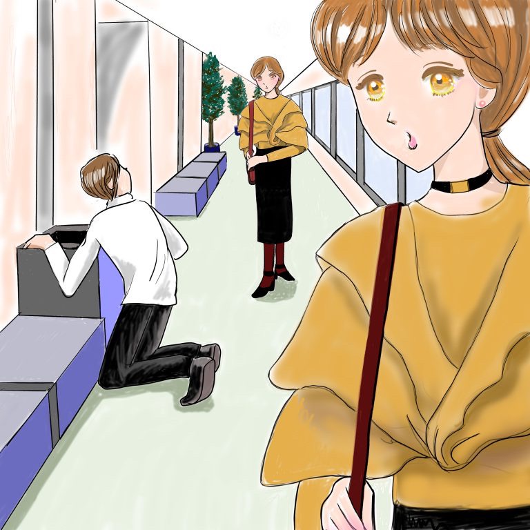 さっき箱を探していた時、江川が下ばかり探したので、背が高い上にハイヒールの田中は上を探していた。